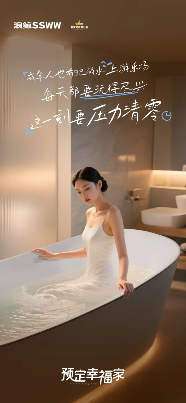 即日起,這場關于幸福的約定正式啟程。浪鯨將陸續發布《定制幸福的一萬種可能》主題短片,用鏡頭記錄那些因定制而閃光的日常;系列海報則替你說出“浴室是人們治愈的港灣”的心聲。