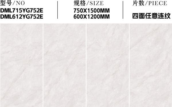 創新推出 750×1500mm&600×1200mm 黃金子母規格,大磚鋪陳客廳盡顯大氣層高延展,小磚適配廚衛臥室精準裁切,任意連紋設計可實現紋理無縫銜接,全屋通鋪一體化,提升設計整體性。