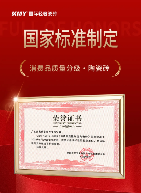 在消費升級與產業轉型的雙重驅動下,陶瓷行業正邁入標準化、分級化與高端化協同發展的新階段。根據國家標準化管理委員會公告,自2025年12月1日起,GB/T 45817-2025《消費品質量分級 陶瓷磚》國家標準將正式實施。