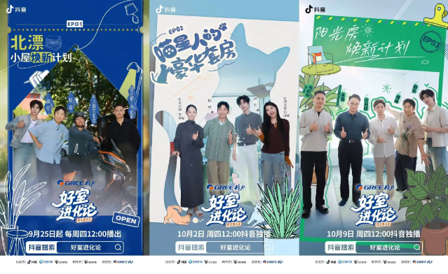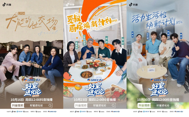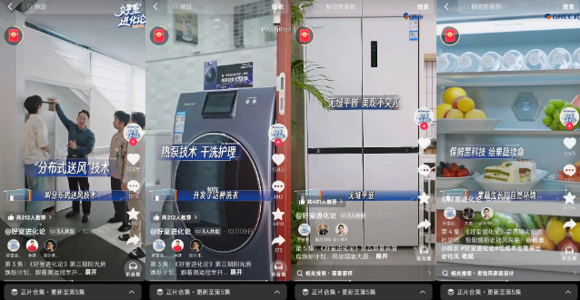 為打通 “觀看—種草—消費” 的關鍵鏈路,「好室進化論」IP特別打造H5專題頁面,最大化承接全站熱度,將內容價值高效轉化為商業(yè)價值。專題頁作為微綜播放入口,支持用戶隨時回看節(jié)目精彩片段;同時整合達人種草專區(qū),集中展示格力產品在真實場景中的使用效果;最后設置 “同款選購” 通道,用戶可直接跳轉購買微綜中出現(xiàn)的新國標全能王空調、505荔枝冰箱、鯨濤鋅礦凈水機等產品。另外,節(jié)目依托抖音平臺強大的流量資源,通過話題頁、開屏廣告、阿拉丁推薦、H5等多渠道全方位導流,最大化覆蓋目標受眾。