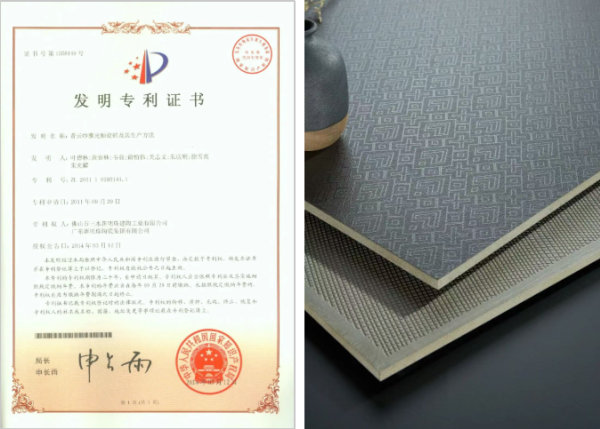 ▲《香云紗雅光釉瓷磚及其生產(chǎn)方法》發(fā)明專利