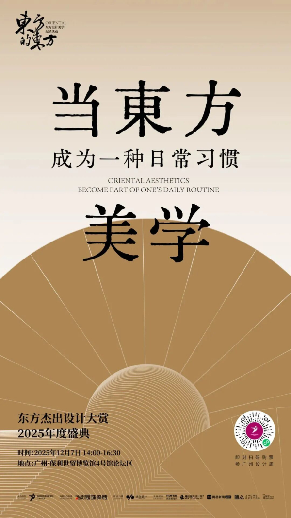 東方的東方·東方杰出設計大賞2025年度盛典將以“當東方美學成為一種日常習慣”為主題,內容涵蓋大師分享、主題論壇與頒獎典禮三大環節,于2025年12月7日在廣州·保利世貿博覽館4號論壇區盛大舉辦!現場還將邀請到東方大師訪談嘉賓段元老師、尼克老師以及古城專欄6位古城專欄代表親臨現場共同講述東方風骨!