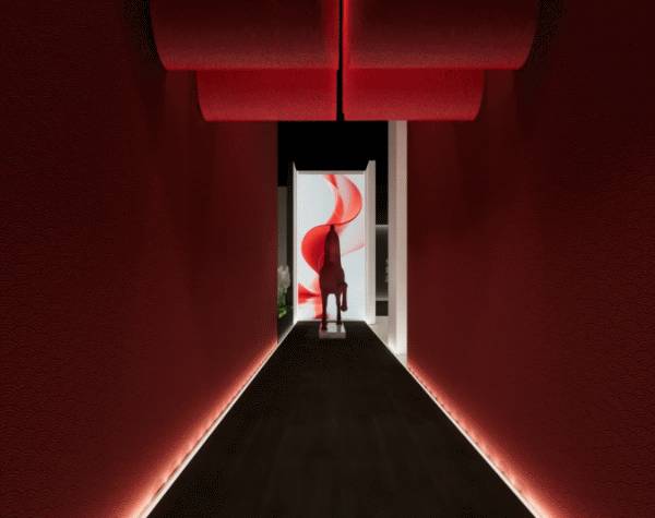 以熱情的紅色為主調,象征經典與東方的現代覺醒。奔騰紅馬,引人入境,營造“立馬當紅”的視覺沖擊。在此,見天地,亦見奔涌的自己!