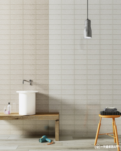 個人最喜歡的是這個系列墻磚200*600的尺寸,跟市面常見300*600的尺寸不同,有助橫向延伸的視覺效果,對小戶型來說是個亮點。表面還是特質的柔光釉,據說磚面光澤度控制在15°~25°范圍內,是人體視覺較為舒適的自然光感度,既沒有亮光造成的感官壓抑,也沒有啞光帶來的暗淡光線,溫柔護目。