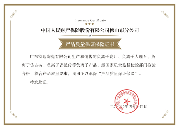 特地為生產與銷售的負離子功能瓷磚購買了保險,