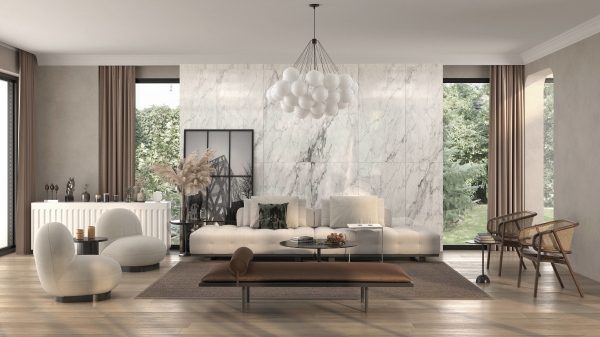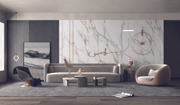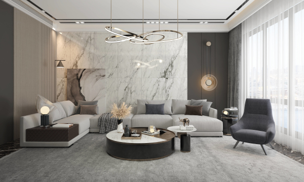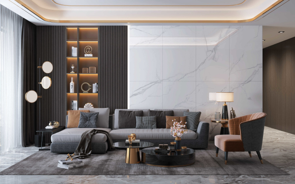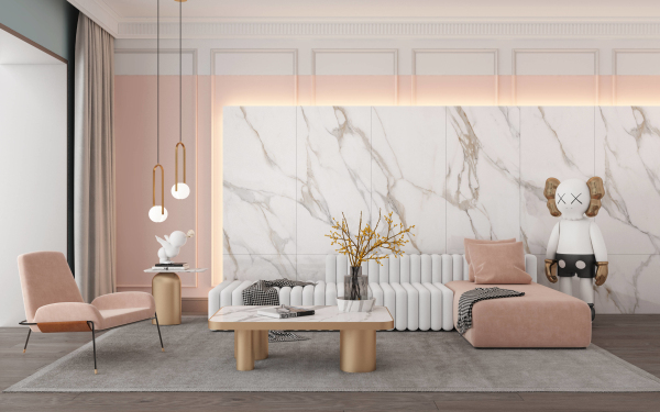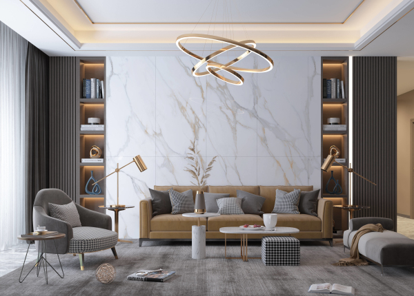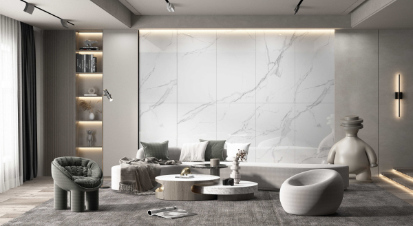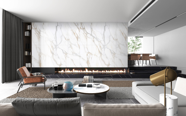 精雕瓷肌面質感,白與黑的紋理搭配,成為經典白色石材典范,